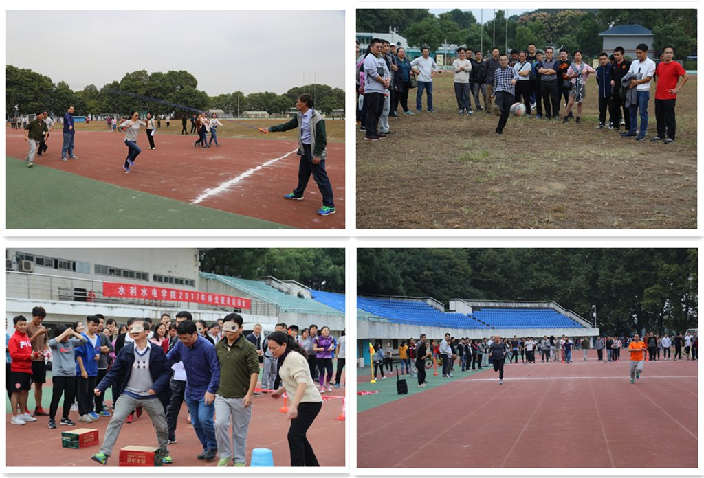 2017年师生健身运动会在工学部操场举行,来自水利系、水电系、河流系、水文系、机关五个参赛队伍的共一百二十余名师生参加了此次运动会。