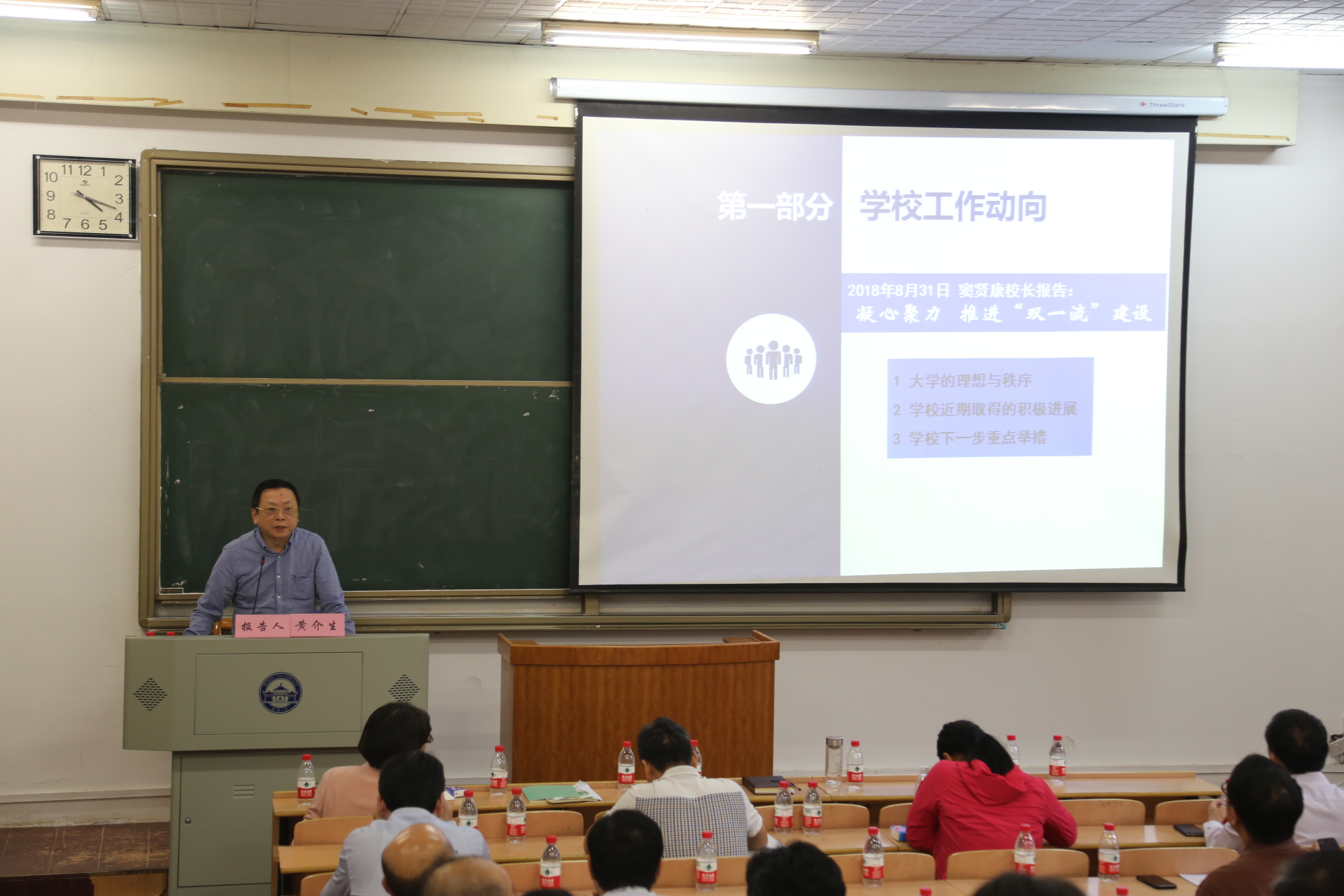9月27日下午,学校实验室与设备管理处处长雷敬炎、保卫部副部长魏友团为全院教职工作设备安全、消防安全报告,院长黄介生作报告布置本学期工作,全院教职工共200余人参加了会议,党委书记程连珍主持会议。
