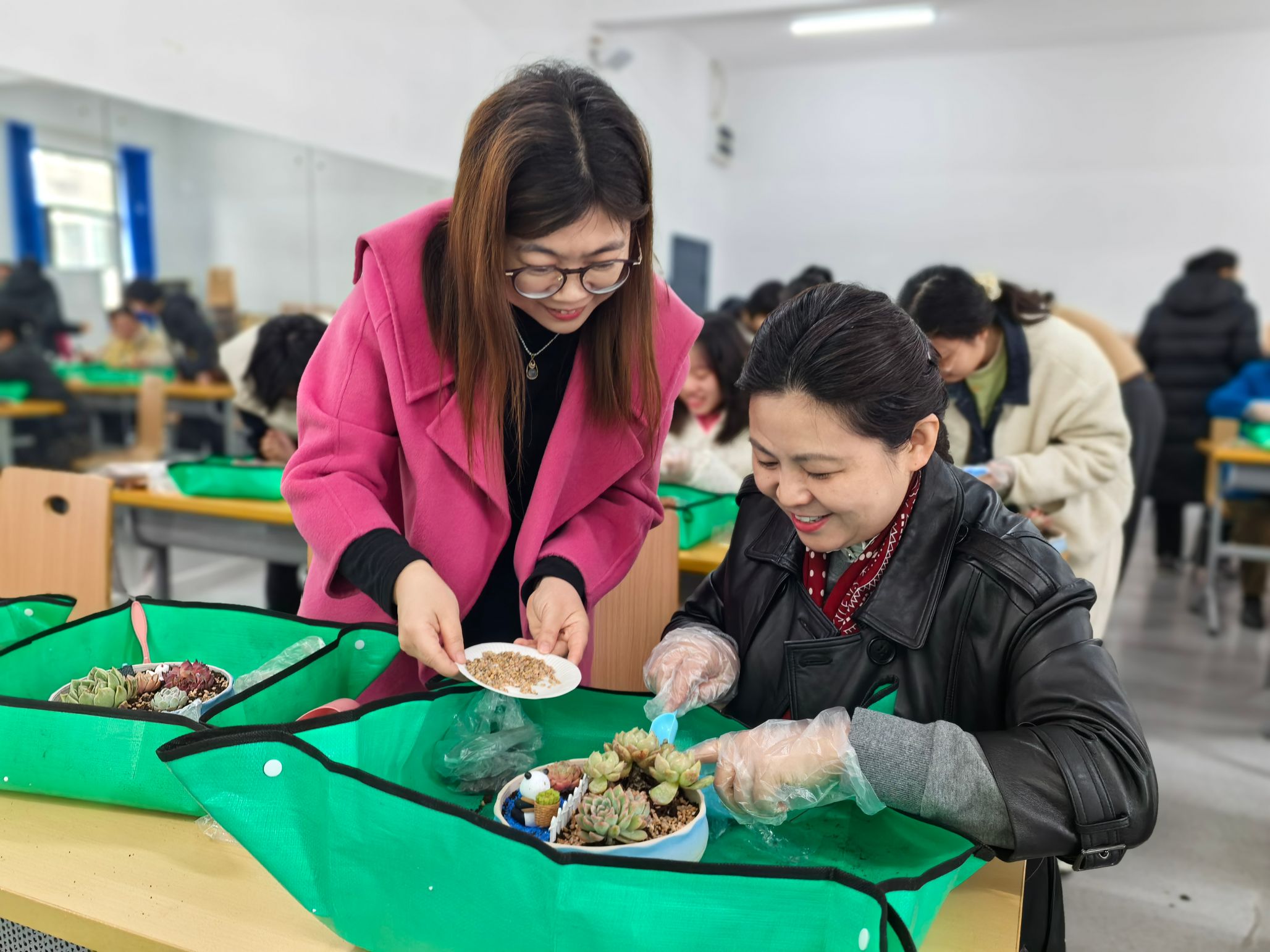又是一年花开时,3月7日上午,为庆祝“三八”国际劳动妇女节,丰富女教职工精神文化生活,学院工会在学院8105组织开展一次多肉微景观DIY活动。