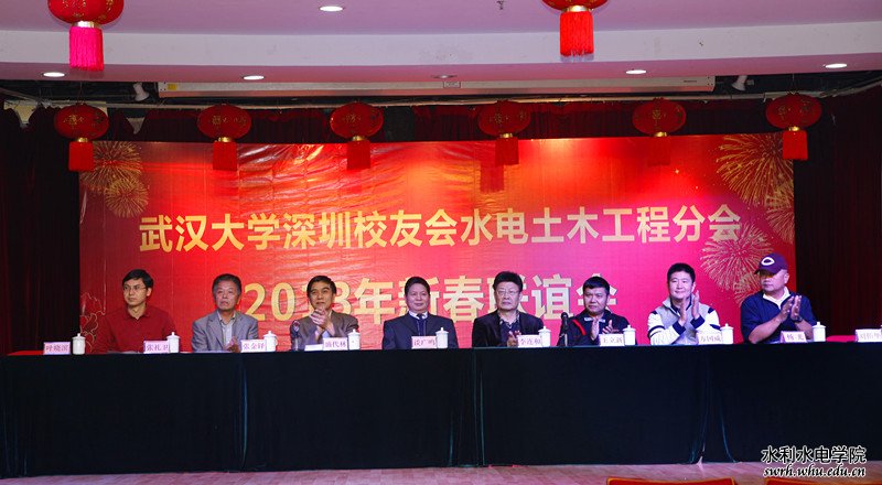 深圳校友会水电土木工程分会在深圳景田酒店举办2013年新春校友联谊会。武大在深圳从事水务、电力、土木等行业的两百多名校友欢聚一堂,共诉友情,喜迎新春。武大副校长谈广鸣,原深圳市政协副主席、武大深圳校友会名誉会长李连和,深圳市水务局副局长、分会理事长盛代林,武大深圳研究院院长、深圳校友会秘书长方国威等嘉宾以及近300名校友参加了这次联谊会。