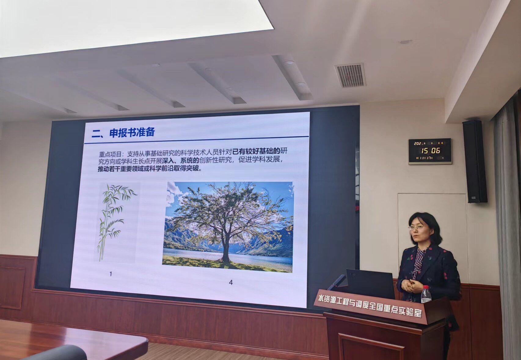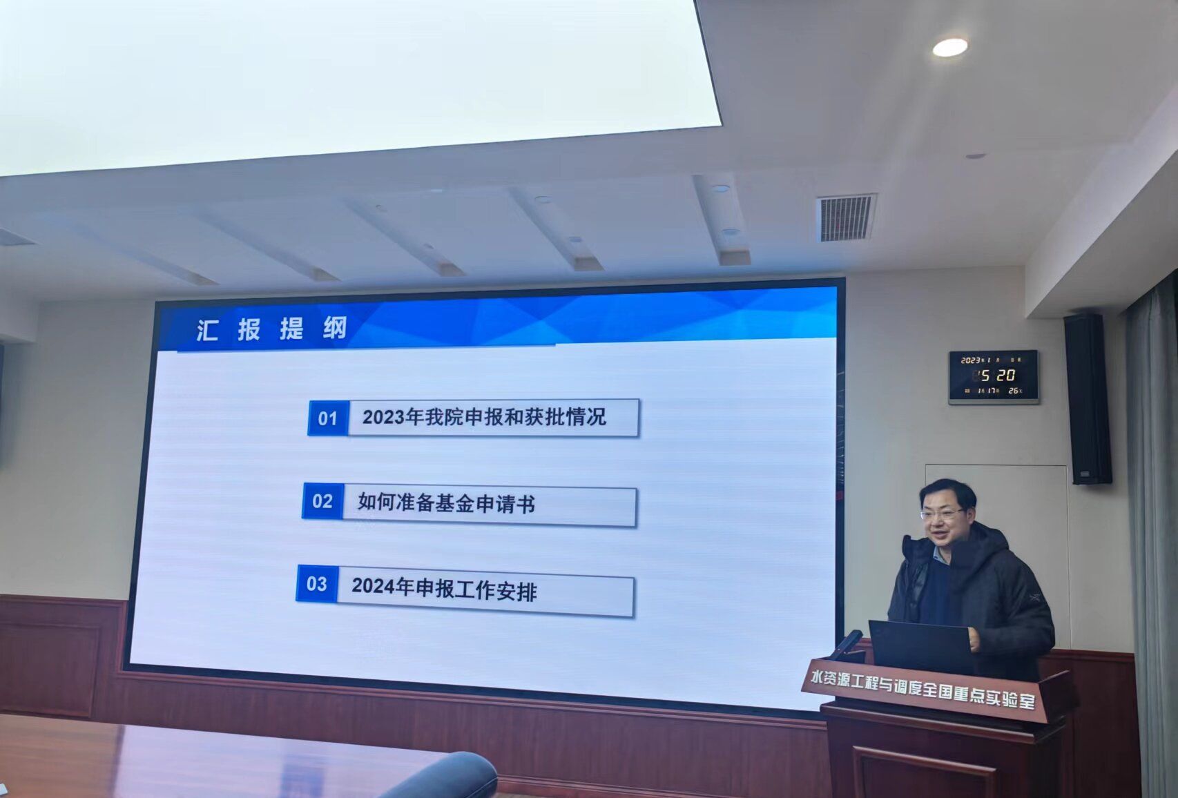 科学技术发展研究院科研项目管理处副处长乔进作为特邀嘉宾莅临会议现场,水资源工程与调度全国重点实验室副主任曾玉红、学院各系主要负责人、中青年教师等40余位代表参加会议,会议由Porncams