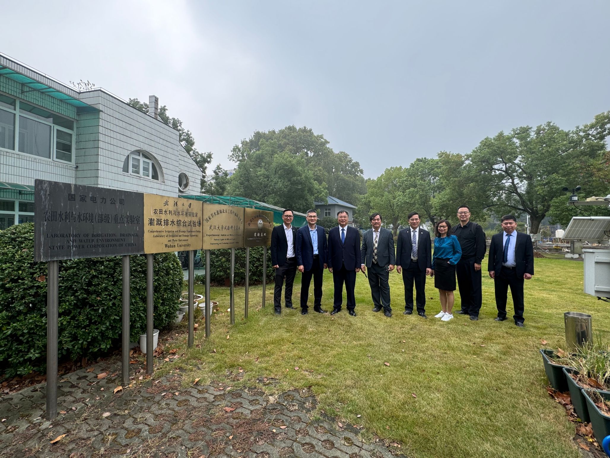 董斌带领团队参观灌溉排水与水环境综合实验场,讲解了各类大型仪器对于土壤各类参数进行采集和数据分析处理的操作方法。他提到,越南是水稻出口大国,具有丰富研究资源,可开展灌溉排水新技术等相关方面的应用实验研究,并对双方开展合作提供了思路与建议。