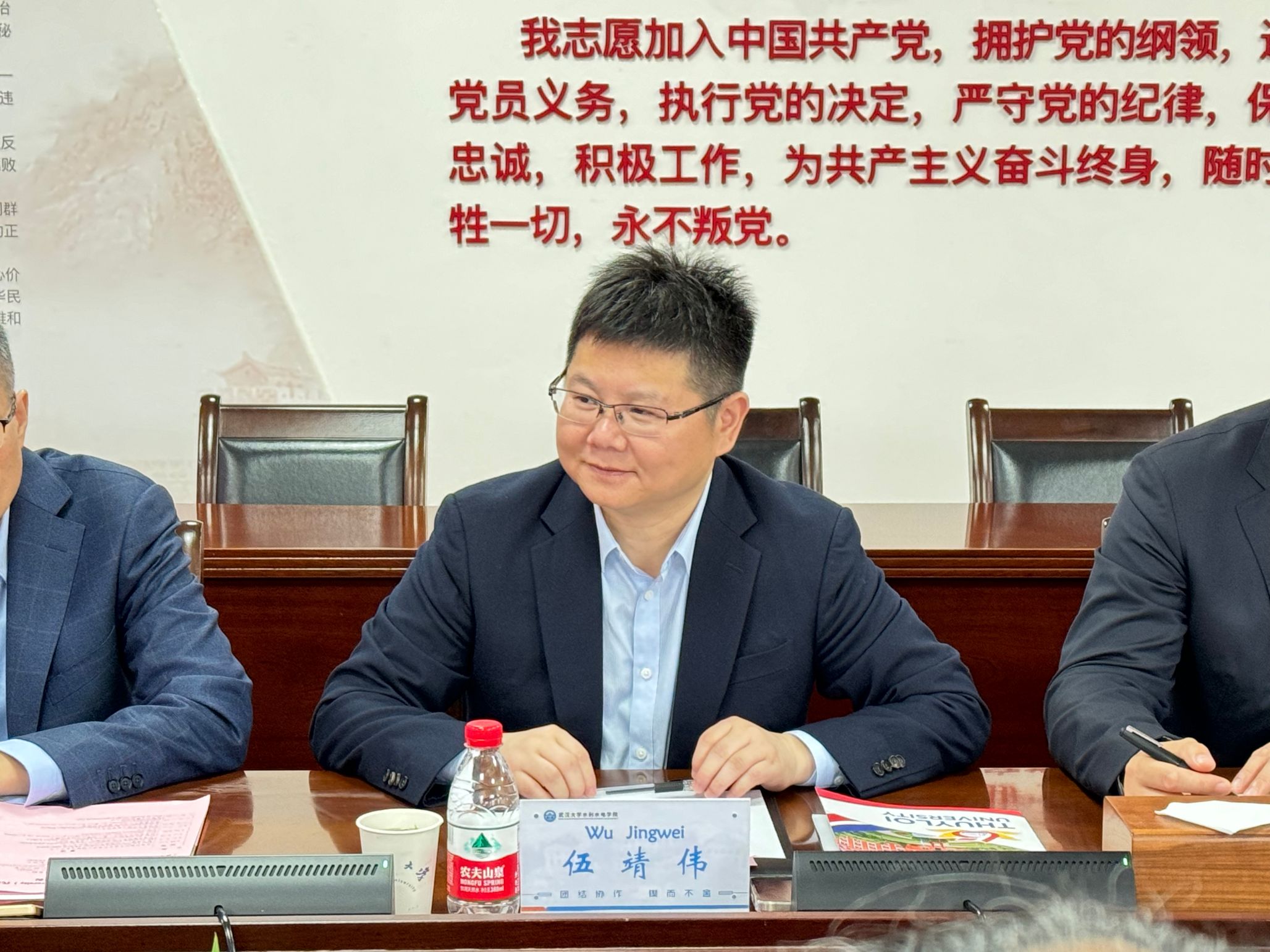 会上,伍靖伟对越南水利大学副校长代表团到来表示热烈欢迎。他提到,20世纪50年代,学院招收的第一批留学生全部来自越南。70年来,学院在发展历程中,始终高度重视国际交流工作,面向“一带一路”共建国家国际学生开展了各类教育培训活动。他希望,通过这次交流能进一步推进实质性合作,让两院、两校的交流增益中越两国友好交往。