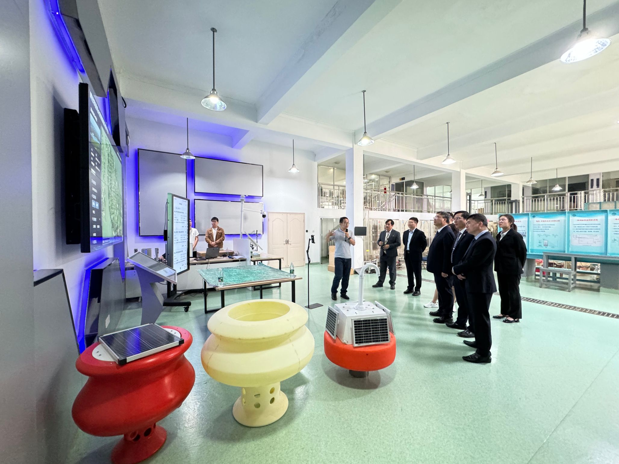 查元源老师向代表团讲解水电学院智慧水利专业的建设与发展历程,并现场展示数字农业水土与人工智能团队的研究进展、成果与应用。