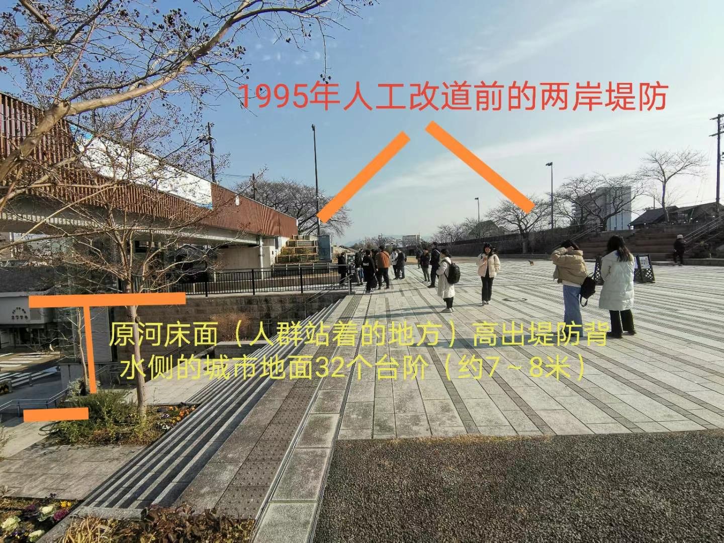 日本琵琶湖(Lake Biwa)是日本最大的淡水湖,湖泊面积达670km²,贮水量275亿m³,其综合治理一直是日本政府和地方当局的重点工作。为抵御洪水灾害,琵琶湖流域构建了“分级调控”体系:上游通过天濑大坝和濑田川洗堰控制泄洪流量,下游则以淀川堤防抵御洪水倒灌。1月22上午,两校师生考察了天濑大坝,京都大学小柴孝太老师介绍了大坝的基本情况。天濑大坝位于宇治川,坝下游淀川、桂川、木津川等多条支流相汇后注入大阪湾,致使下游地区长期深受洪水灾害困扰。天濑大坝在淀川流量较大时可控制下泄流量至160 m3/s,从而减小下游防洪压力。小柴老师介绍,由于坝后回水区域形似凤凰,故得名“凤凰湖“,以凤凰湖为下水库,在喜撰山上修建了上水库,进行抽水蓄能发电,上下库高差达200余米。