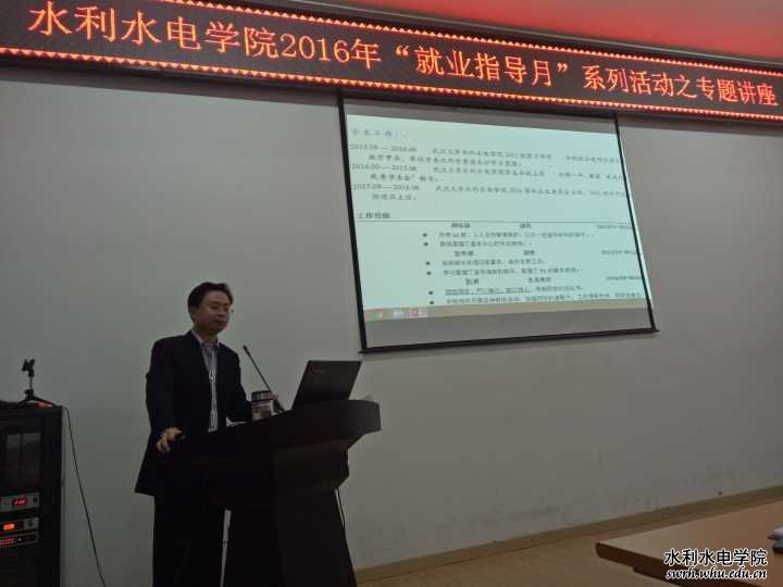 学工办主任、团委书记韩琦主持,2013级有就业意向的本科生参加了本次讲座。