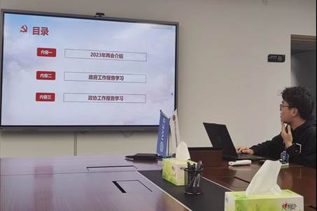 会议第一项,由蒲磊同志带领大家学习全国两会精神,从两会召开的背景、召开议程切入,向大家传达两会精神。春满山河际,奋楫扬帆时。蒲磊同志介绍了政府工作报告中全面总结了过去五年取得的伟大成就,一串串彰显成绩的数宇,一声声催人奋进的号角,一幅幅凝聚民心的新画卷,蒲磊同志感慨道:“这些成就无不说明党和国家以民之所望为施政所向的庄严承诺。”最后,蒲磊同志强调青年工作者,要立足新时代,充分发扬实干奋斗的拼搏精神,为实现中华民族伟大复兴的中国梦贡献力量。