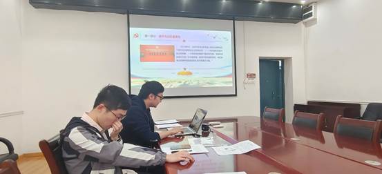 工学部八教8111会议室召开四月组织生活会,为深入学习贯彻习近平新时代中国特色社会主义思想和党的二十大精神。本次会议包括三项议程:一、共同学习“推动绿色发展,促进人与自然和谐共生”主题团课;二、讨论曾毅航同志的发展问题;三、学习“缅怀先烈事迹,继承革命精神”主题党课。会议由党支部书记朱斌同志与团支部书记徐欢同志共同主持。