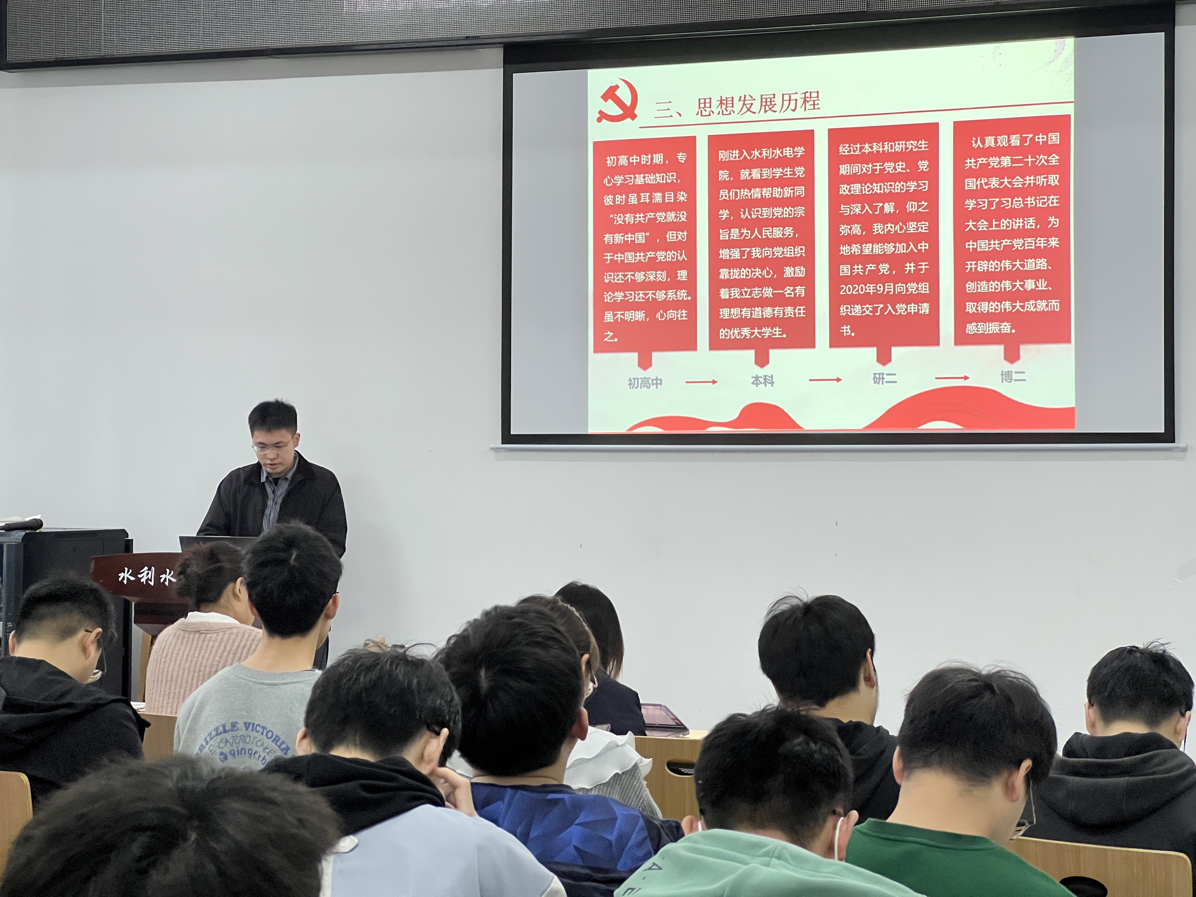 4月27日15时,学院水文水资源系研究生第一党支部在工学部8教8105会议室召开四月组织生活会。本次会议包括四项议程:一、学习《推动绿色发展,促进人与自然和谐共生》主题党课;二、学习《缅怀先烈事迹,继承革命精神》主题党课;三、讨论程潜同志的发展问题;四、讨论陈梦晗同志的转正问题。本次组织生活会由徐诗恬同志主持。