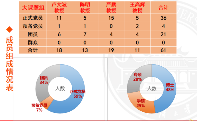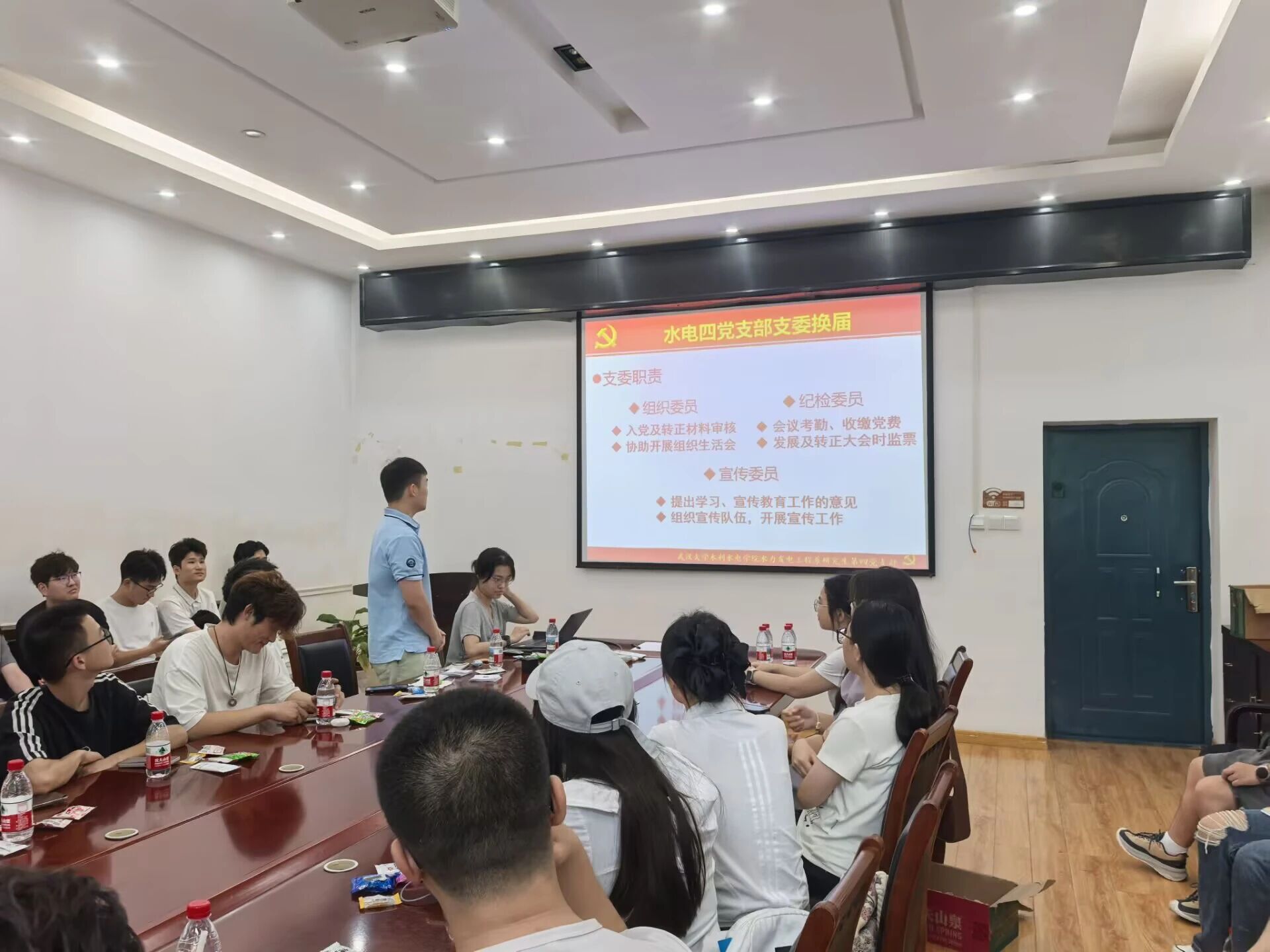 水力发电工程系研究生第四党支部由卢文波、陈明、严鹏和王高辉四位老师的学生组成。2025-2026年度党支部书记由祝哲珺同志担任、副书记由石知行同志担任。支部设有3名支委,包括组织委员、宣传委员、纪检委员,三位支委已在本次会议中通过投票选举产生。