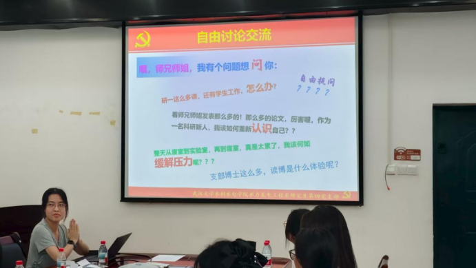 党支部新老成员就科研、学习、生活、毕业、就业等多个方面的问题进行探讨交流,最终党支部的师兄师姐对新成员提出的疑问给出了诸多建议,相信各位新成员能够站在研究生阶段的新起点上,同党支部集体一同成长,共同书写党支部的崭新篇章。