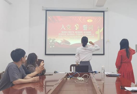 会议第二项为姚洪成同志的转正大会。首先由组织委员彭涛同志清点到会正式党员人数及入党材料;随后姚洪成同志向党支部汇报了自己在预备党员考察期间的表现,并宣读转正申请书;姚洪成同志预备期间的考察人舒奕展、朱瑾同志对其在预备期间的情况进行介绍,与会孔凌浩和郑源等同志也就姚洪成同志的转正问题发表了自己的意见;水力发电工程系研究生第四党支部结合最近召开的两会的相关热点问题对姚洪成同志进行了考察,姚洪成同志阐述了自己对“坚持党的全面领导是坚持和发展中国特色社会主义的必由之路”的认识;最后,经支部大会表决,姚洪成同志如期转为中共正式党员,并由位需贝同志带领姚洪成同志宣誓。