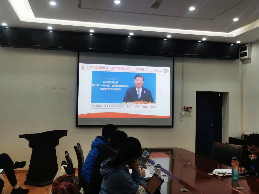 在弘扬丝路精神,从“一带一路”感悟中国之治部分的理论学习中,全体党支部成员一同回顾了中国在“一带一路”倡议中的初心、成果、经验和行动,以及丝路精神在经济、文化、政治和外交方面的体现。中国通过共建“一带一路”推进经济全球化健康发展、突破逆全球化思潮和地缘政治博弈阴霾,推动包容、普惠的经济全球化。总体而言,中国倡导合作共赢、开放包容的立场,在推动区域与全球的合作与发展,实现全球共同发展繁荣以及构建人类命运共同体做出了重要贡献。