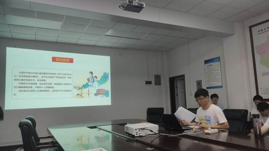 会议第四项,由胡栋樑同志主持党支部的知识竞答。问答环节部分内容为唐茂嘉同志领学的《学习习近平总书记一系列高校重要讲话精神》,部分为中国共产党党史知识,党史是我们最好的教科书,学史明理。问答环节大家踊跃参与,积极讨论问题的相关背景知识,气氛活跃。问答结束后组织委员记录每人正确答题数目,统计并分发相应奖品。