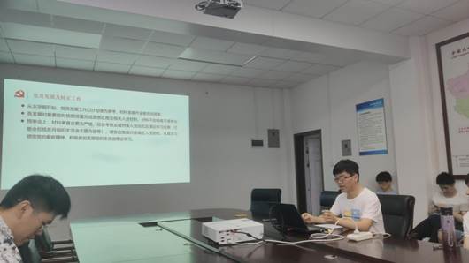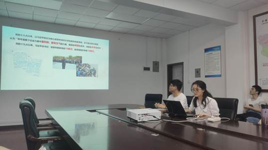 会议第一项,由唐茂嘉同志带领大家学习“学习习近平总书记一系列高校重要讲话精神”主题党课。首先,唐茂嘉同志介绍了近期习近平总书记对青年的期望与重视,党的十八大以来,以习近平同志为核心的党中央对大学生群体高度重视,多次提出殷切期望,认为“青年是整个社会力量中最积极、最有生气的力量,国家的希望在青年,民族的未来在青年”。党的十九大以来,习近平总书记给青年群体回信10余次,赴高等院校考察10余次。随后唐茂嘉同志摘录并回顾过去10年习近平总书记在各大高校的重要讲话,重温以习近平同志为核心的党中央关心青年和青年工作纪实,牢记哪些包含深情的嘱托和期望,其中包括的高校有中国科学院大学、中南大学、北京大学、澳门大学横琴新校区、暨南大学、云南师范大学、西安交通大学、清华大学、中国海洋大学三亚海洋研究院和中国人民大学。最后,唐茂嘉同志向大家分享了习近平总书记在庆祝中国共产党成立100周年的讲话,习近平总书记鼓励青年们把青春奋斗融入党和人民事业,增强做中国人的志气、骨气、底气。领学结束后,参会同志们热烈讨论并交流学习心得。