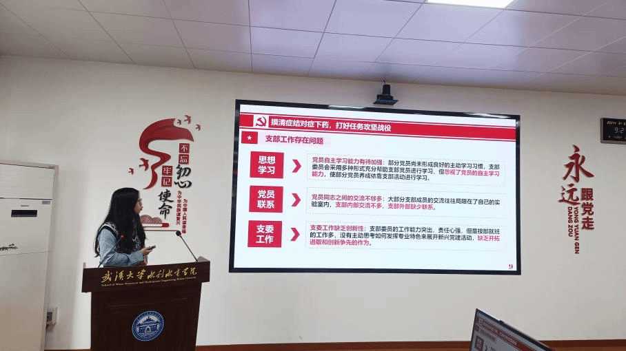 随后,22名党支部书记围绕党支部组织建设、制度建设、活动开展、工作创新等方面总结全年党建工作,并从履职情况和工作成效、存在的主要问题及原因、下一步工作思路和针对性措施等方面进行述职,并就现场提问给予解答。此次述职评议会从支部和个人层面剖析出部分支部存在党支部理论学习形式单一、党团支部共建不足、党支部内部凝聚力不强等问题,需要进一步加以改进和提升。