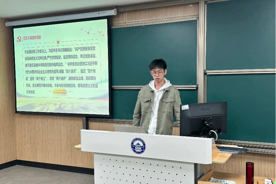 会议第四项,由魏毅恒同志首先带领大家习近平总书记在全国宗教工作会议上的讲话,明确了党员同志不得信仰宗教、参与宗教活动的,党员是马克思主义的坚定信仰者的原则。接着魏毅恒同志从党员不能信仰宗教是我们党的一贯原则、允许党员信教将侵蚀涣散党的肌体两个方面分析了党员同志不得信仰宗教的原因。最后魏毅恒同志表示我们要坚决贯彻习近平总书记的指示——“共产党员要做坚定的马克思主义无神论者,严守党章规定,坚定理想信念,牢记党的宗旨,绝不能在宗教中寻找自己的价值和信念。“
