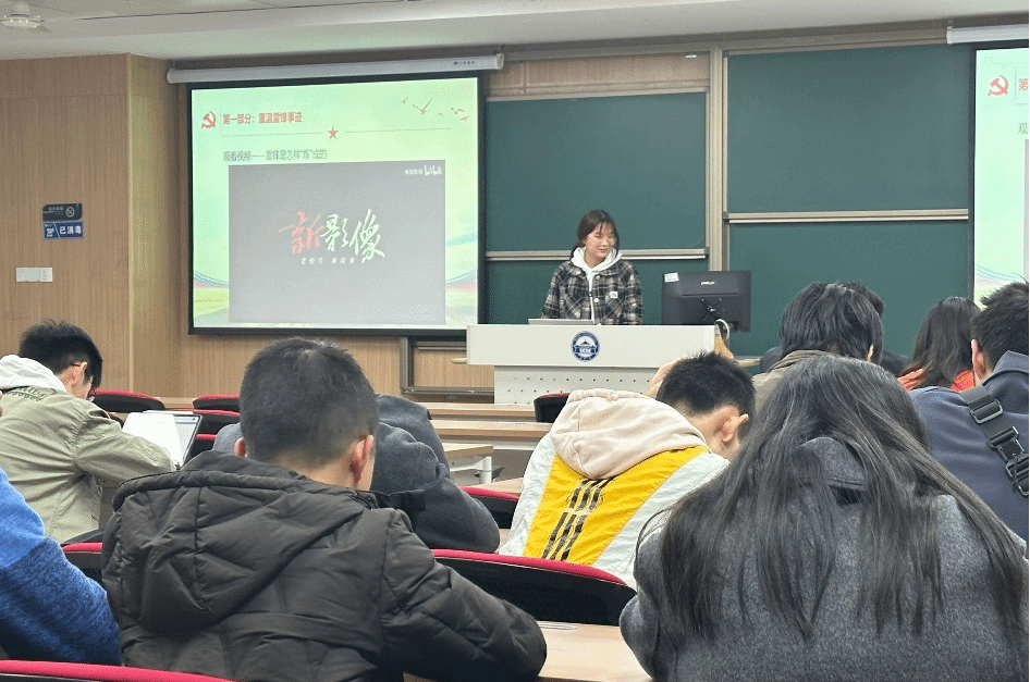 会议第二项,由唐玉洁同志讲解学雷锋专题。唐玉洁同志通过回顾雷锋事迹、观看纪念视频等方式生动形象的带领大家回顾了雷锋的生平及伟大的奉献精神。唐玉洁将雷锋精神的时代内涵总结为“向上”的人生姿态和“向善“的奉献精神与爱国主义思想。唐玉洁同志号召全体同学在科研学习中发扬雷锋”钻“的精神争当勤奋好学、勇于创新的好学生,在日常生活中学习雷锋同志勤俭节约精神,建设节约型校园。