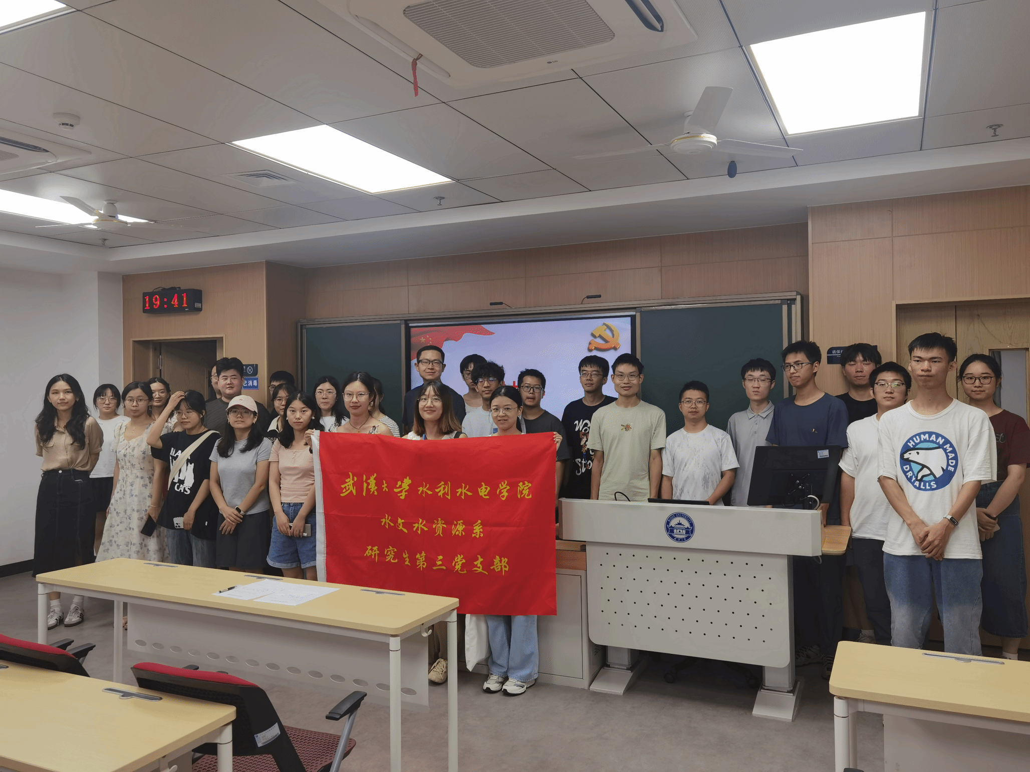 9月20日晚上18:30,水文水资源系研究生第三党支部在工学部主教A209会议室召开了新学期第一次组织生活会暨换届迎新交流会。会议由党支部书记杨家辉同志主持,支部全体成员参加本次会议。会议包括三部分内容:党课学习、支部换届大会及支部迎新会,本次党课共有两个主题:一、深入学习贯彻党的二十届三中全会精神;二、全面贯彻习近平新时代中国特色社会主义思想,弘扬李德仁院土精神。