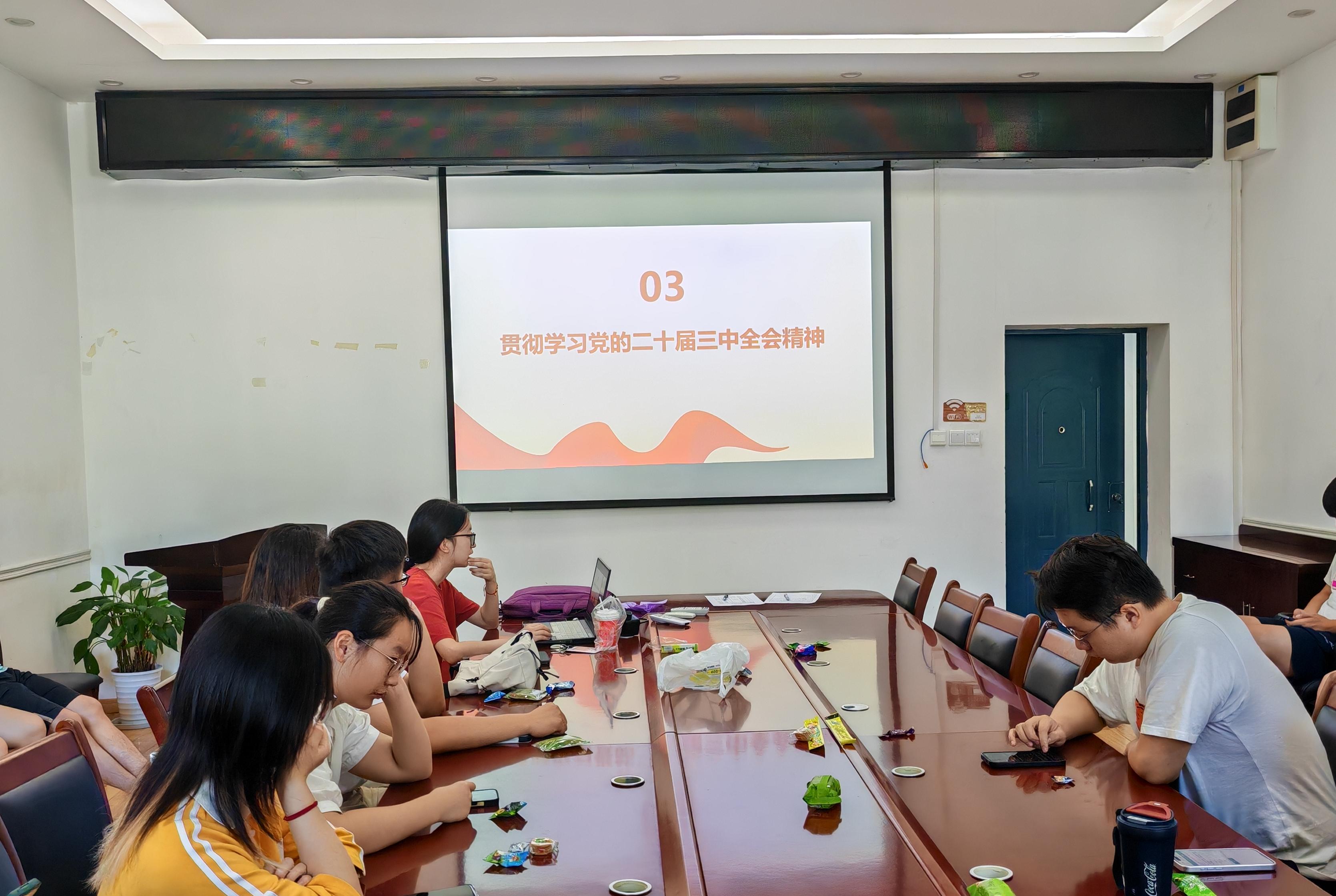 会议第三项,韦丝雨同志带领支部成员学习贯彻党的二十届三中全会精神。通过学习,支部党员同志们认识到党的二十届三中全会描绘了一个充满希望和机遇的未来蓝图,看到了科研事业广阔的发展空间与无限可能。党员同志们应当将个人发展与时代发展相结合,贯彻落实全会精神,顺应国家需求,为国家建设与发展添砖加瓦。
