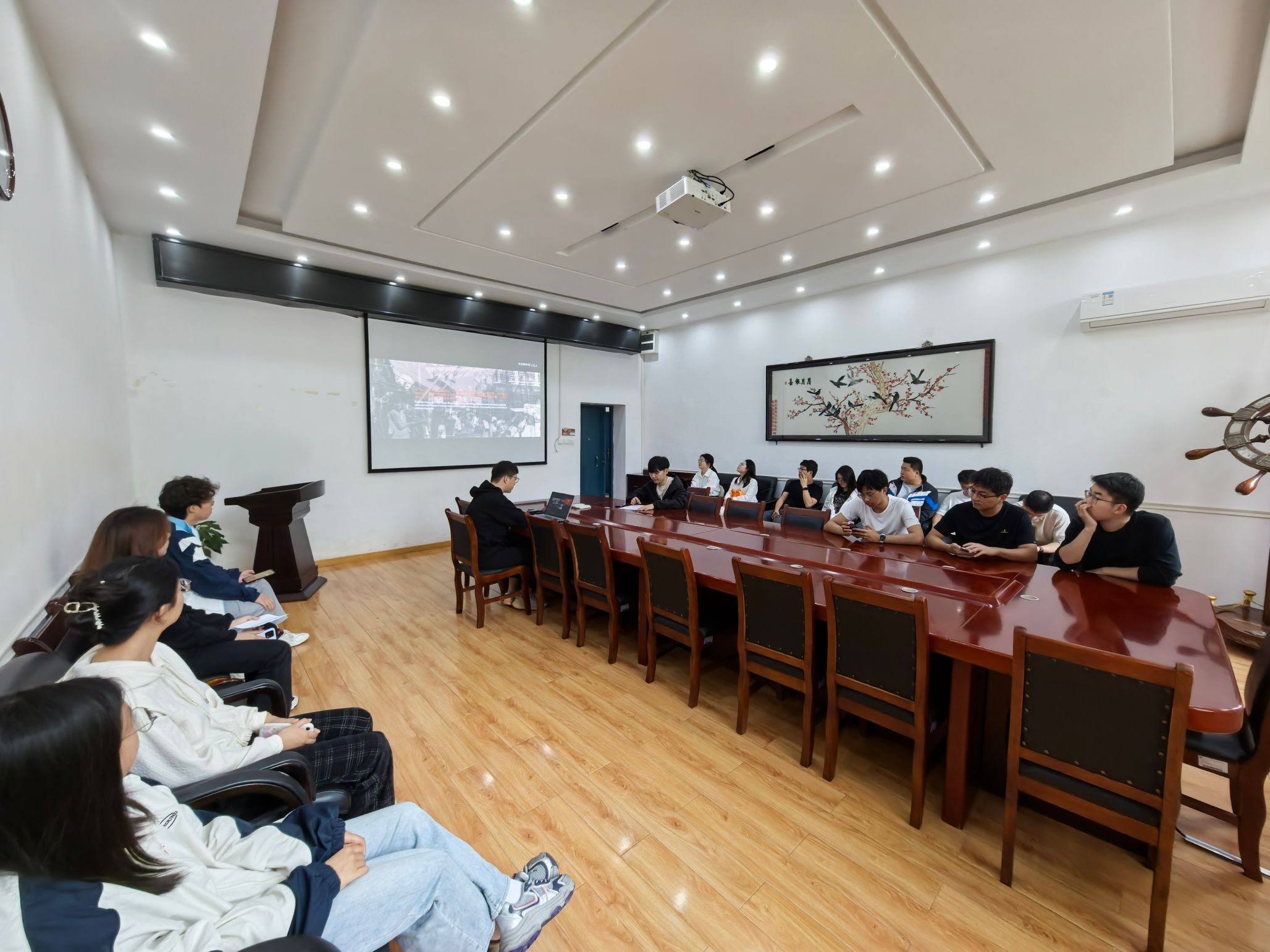 会议第二项,李晓东同志带领大家观看《建国大业》等红色电影。2024年是中华人民共和国成立75周年,七十五载波澜壮阔,七十五年春华秋实,党团结带领全国各族人民历经风雨洗礼、走过峥嵘岁月,铸就了今日的辉煌盛世。李晓东同志通过分享自己与祖国共成长的故事,以亲身经历展现了一名青年党员的爱国情怀和奉献精神,激励大家不忘初心、牢记使命、共同奋斗,充分展现了新时代学生党员的风采和对祖国母亲深深的祝福。