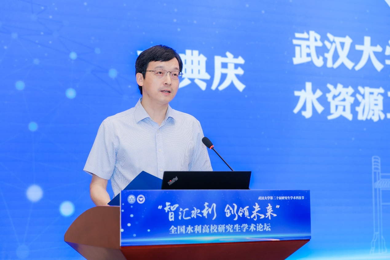 李典庆在开幕式致辞中回顾了学院在水利科教领域的卓越贡献,重点介绍了“珞珈二号”卫星发射、智慧水利人才培养体系构建及软硬件平台研发等数智化时代新成果。他期望与会学子通过本次论坛激发灵感、深化友谊,共同为中国水利事业的数智化转型贡献智慧力量。