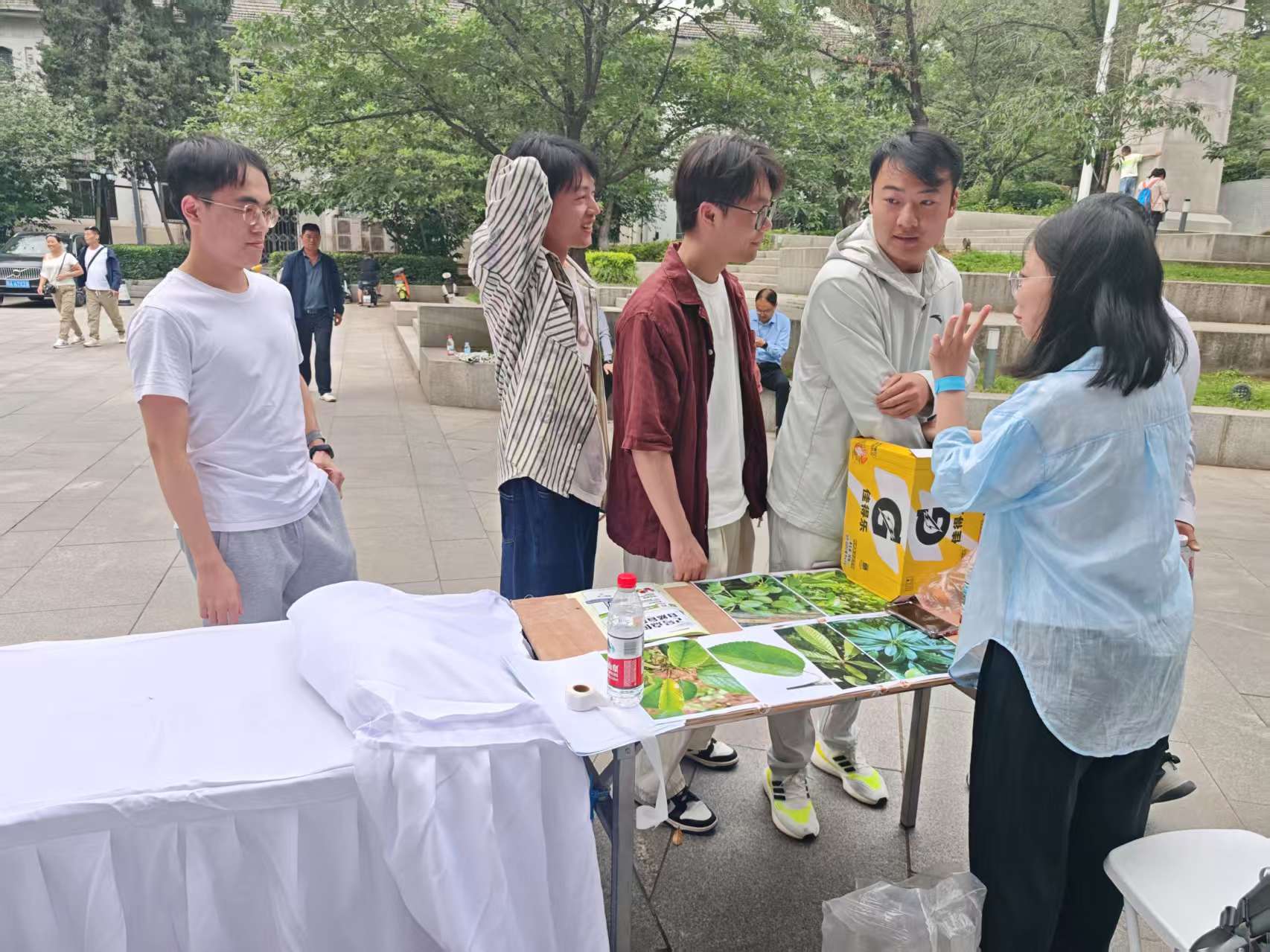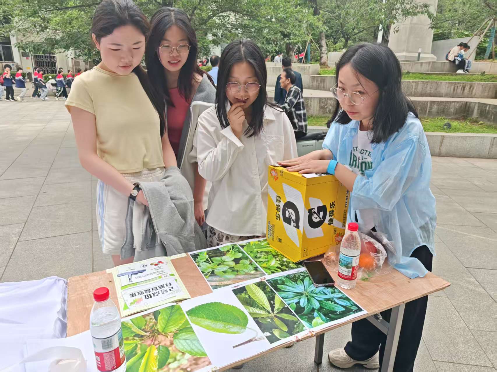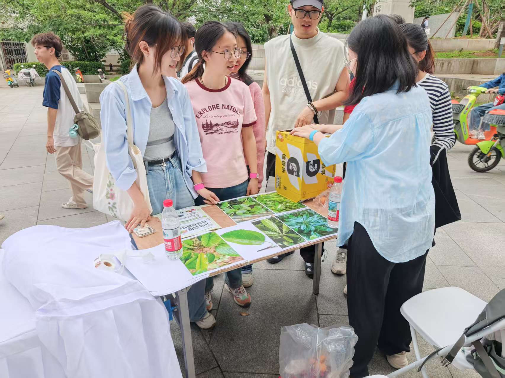 第二站是位于鲲鹏广场“生态观测站”,参与者需闭眼触摸识别五种果实,并匹配对应的树种卡片。通过五感激活的方式,同学们回归自然,感受生命的多样性。