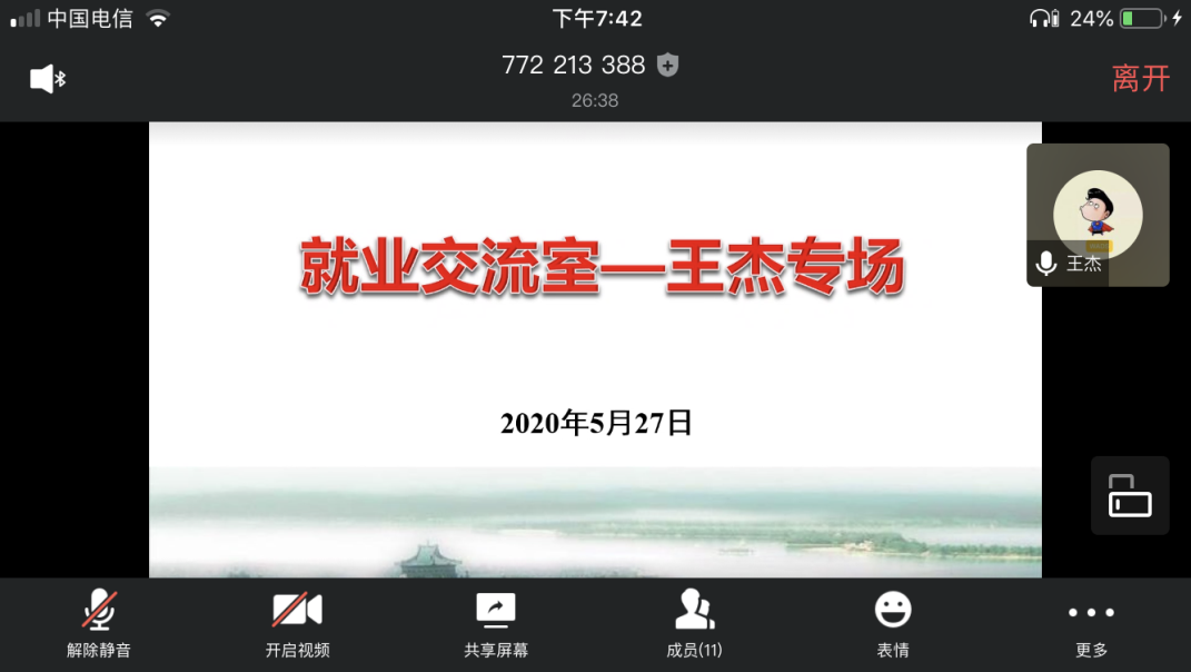 同学提供一个倾吐就业压力、相互交流、解答择就业困惑的平台,就业实践中心于2020年5月27日~31日推出线上就业交流室,交流全过程通过bilibili进行现场直播。本次活动邀请到了王杰师兄、叶林师兄与黎臻师兄进行交流分享和答疑解惑。