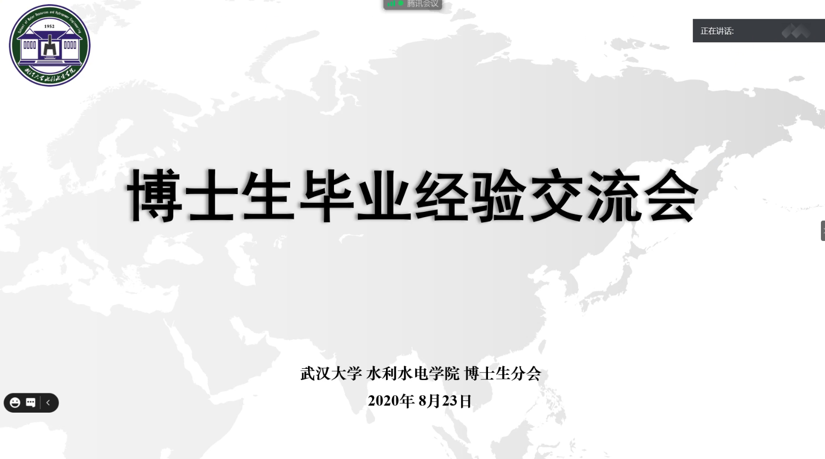 博士生毕业经验交流会以腾讯会议的形式召开,院党委副书记龚文德,研究生辅导员左志香、李响,博士生分会组织代表及90多位研究生参会。