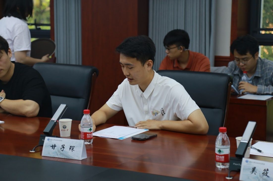 学生基层党建工作者的代表,从组织建设、制度建设、学院活动参与、自主活动开展、科研工作创新等多个方面,对水利一支部党建工作成果和经验进行了分享。会上,徐浩林同学通过介绍两个案例:支部成员赴荆门市开展智慧农田管理技术服务与推广;以及赴北京市金科环境公司并与Porncams