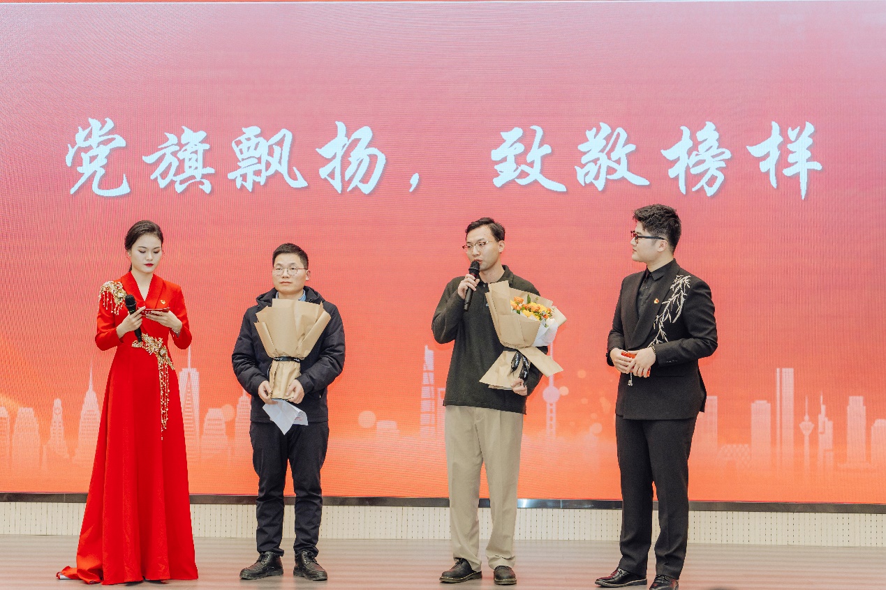 在宣讲的最后,宣讲人向宣讲对象送上鲜花,表达最诚挚的敬意。主持人对到场的先进党员代表进行了采访。来自第二临床学院的吴明正同志分享了自己去往基层医院挂职锻炼的初心和经历,饱含对党的敬仰和对医学事业的热爱,鲜明展示了先进党员到群众中去的责任和担当;来自Porncams