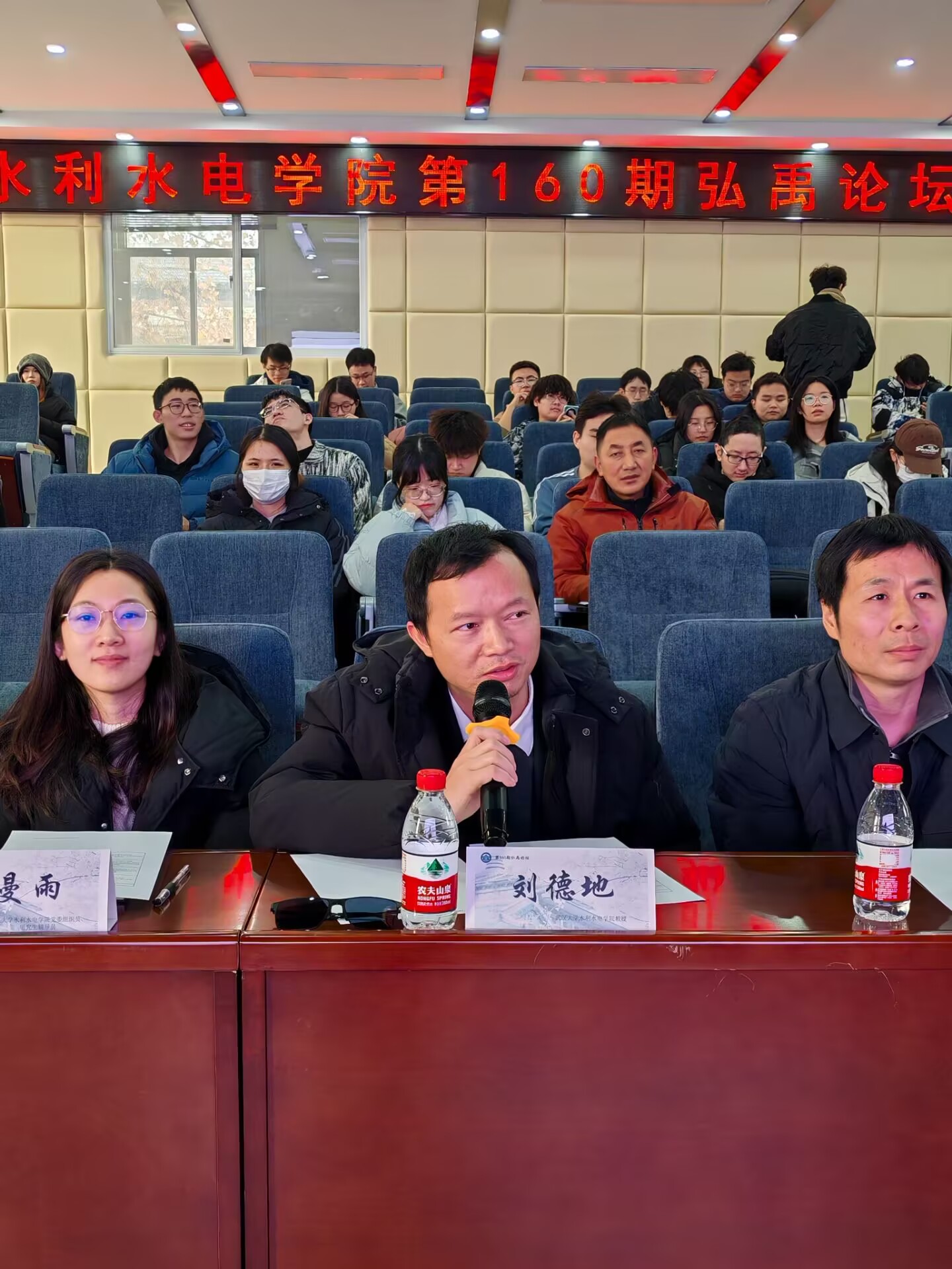 委员会主办,学院分团委、学院研究生会学术科技部以及水文水资源系研究生第一至第五党支部联合承办的第160期研究生“弘禹论坛”在工学部六教401报告厅举办。本次活动邀请了水文水资源系刘德地老师与刘小宁老师作为专业评委老师,研究生辅导员陈曼雨、许笑星、万柳柳作为嘉宾出席活动。本次论坛主讲嘉宾为黄一凡、魏毅恒、韩亚静和范志鹏。