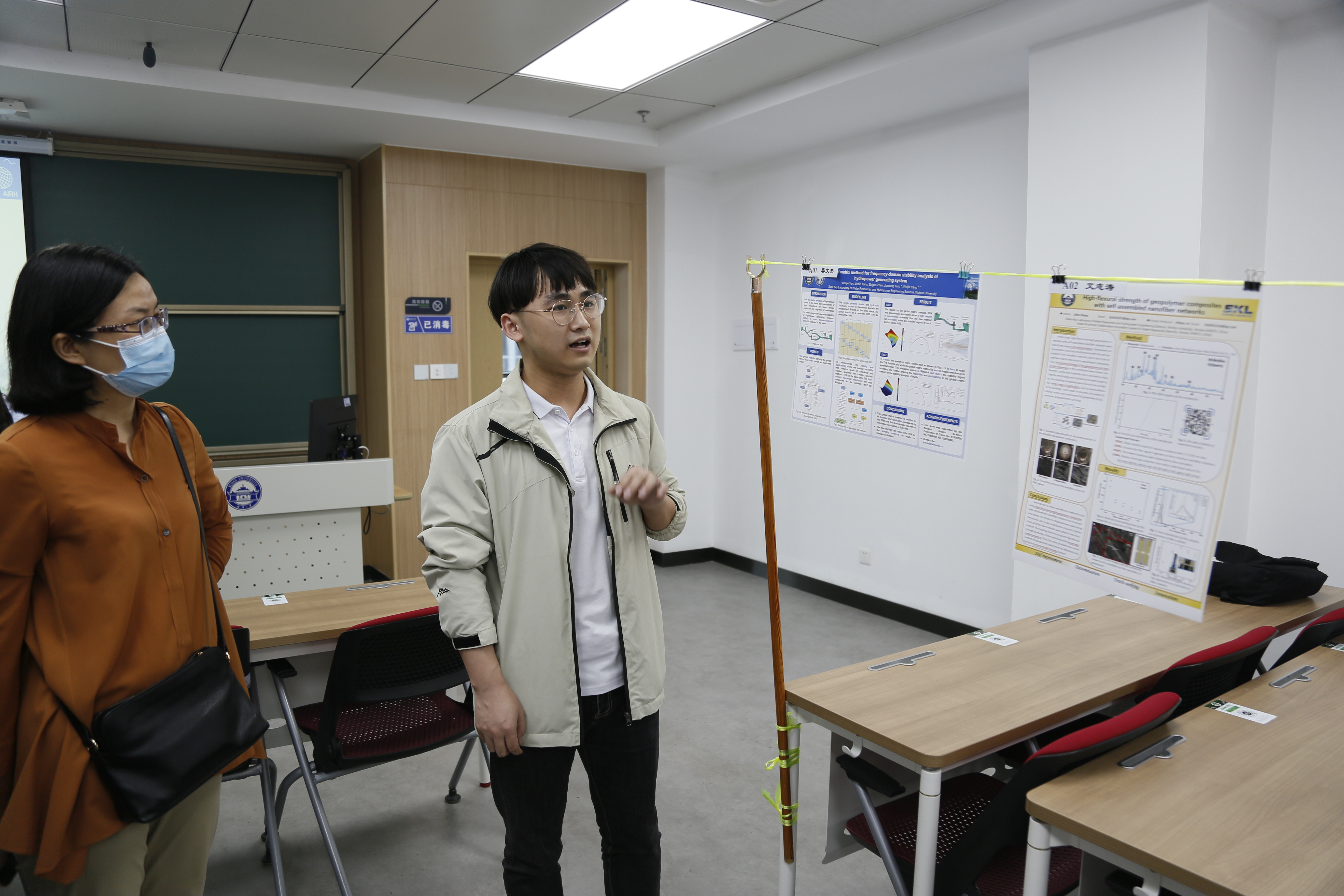 活动伊始,参赛选手随机分配成A、B两组,通过5min的英文介绍向嘉宾和他人展示POSTER内容,并用英文回答嘉宾提出的问题,展示结束后,所有参赛人员投票根据评选标准,选择各组最优秀的作品进行投票。