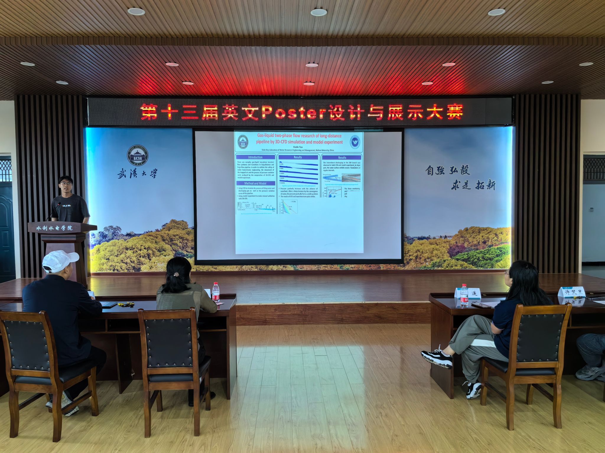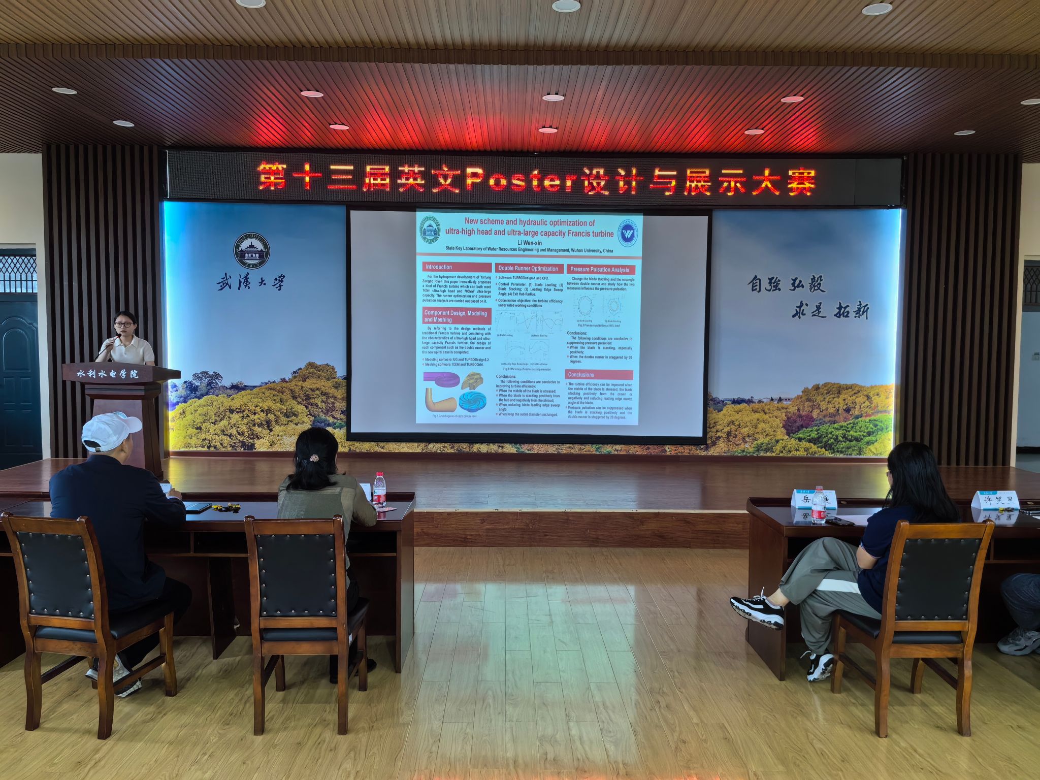 土木建筑工程学院研究生会联合举办的第13届英文Poster设计与展示大赛在工学部八教8328会场举行。出席本次决赛的嘉宾有程永光老师,曾玉红老师,岳遥老师以及研究生辅导员许笑星老师。