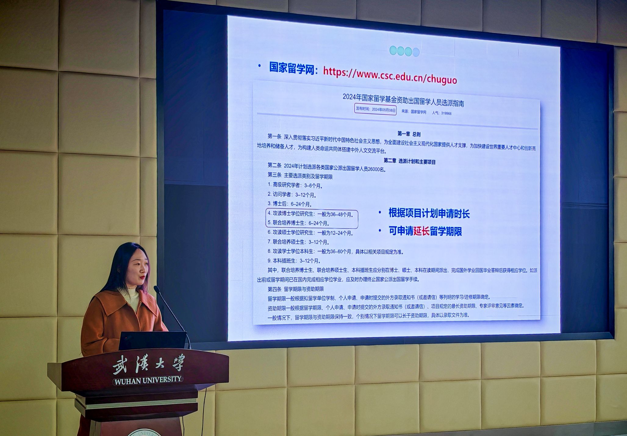 余博闻同学向大家着重介绍了CSC申请的大致流程和注意事项、留学的个人学习经历以及日常生活等方面的经验。首先是CSC申请的时间节点,包括如何在找到心仪的学校以及研究方向相似性高的导师。他详细介绍了2024年国家建设高水平大学公派研究生项目各个重要的时间节点,包括提前发邮件联系导师、邀请信和导师CV书写、取得Offer后需准备的其他必要材料以及校内申请CSC的结果查询等,接着,余博闻同学结合自身经历分享了自己在国外的学术和科研生活,学术方面包括组会的频率、课程和国际会议的丰富程度、各课题组之间的交流等,生活方面详细介绍了在留学生活中各方面的开销情况以及资金分配,在异国文化差异下是如何融入当地生活的,以及自己的爱好和经历……