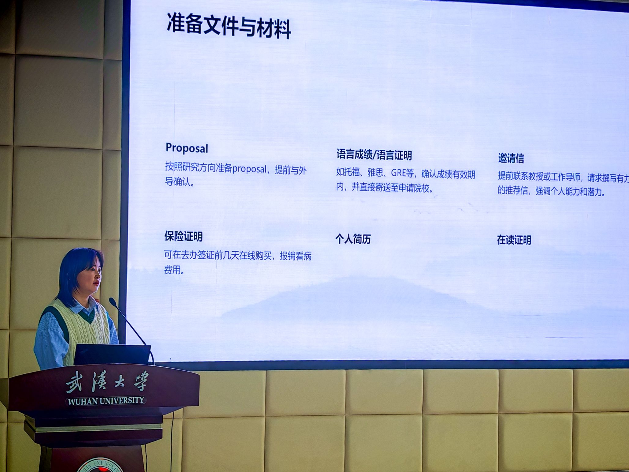 首先,王若晗同学介绍了如何选择专业方向与学校,包括明确与个人兴趣、职业规划相符的研究方向、关注学校的专业排名找到顶尖学府、考虑地理位置对学习体验和生活成本的影响以及详细了解目标学校的录取标准等,并介绍了Proposal、语言成绩/语言证明、邀请信、保险证明、个人简历和在读证明等出国留学申请材料的书写格式和方法。此外,王若晗同学还介绍了如何了解目标国家文化与生活方式,包括深入,认识到不同国家的文化差异、熟悉日常生活的习惯和细节、掌握基本的当地语言、建立良好的人际关系等。接着,王若晗同学还介绍了申请过程中的各种挑战与应对方法,包括如何高效准备语言考试、签证的面试技巧以及处理申请中的意外情况。最后,王若晗同学分享了自己留学生活体验的思考与感悟,最重要的是要理解文化差异,积极参与社交,加速融入新环境,同时也要保持自我认同,找到个人的平衡点。