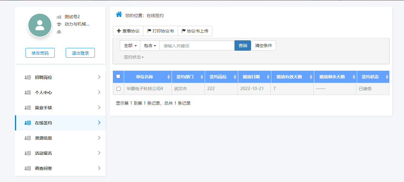 3. 打印就业协议书并签章,拍照上传就业中心系统,递交纸质版协议