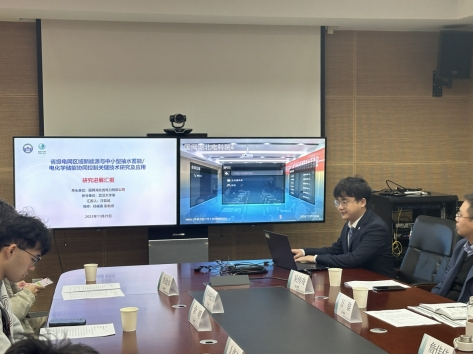 硕士研究生汪哲铖针对参与的国家电网总部科技项目“省级电网区域新能源与中小型抽水蓄能/电化学储能协同控制关键技术研究及应用”进行了专题汇报,汇报了校企合作研究的最新进展及推进需求计划。国网湖北省电力有限公司创新创业导师钱一民对项目汇报表示肯定,并指出项目十分有意义,尤其是中小型抽水蓄能与电化学储能系统协同运行将对新型电力系统的运行十分有益,但同时也提出了后续需要依托湖北省实际工程进行深入项目开展的建议。