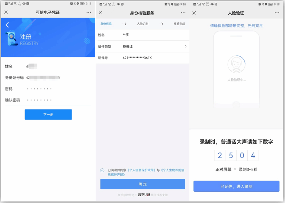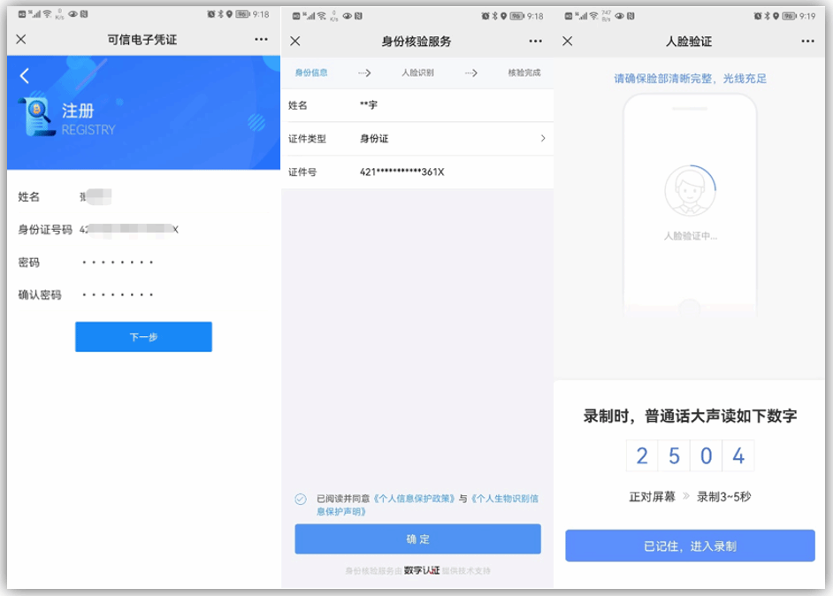 随后系统将进行身份核验,身份核验成功后,即可使用注册信息登录可信电子凭证服务平台。