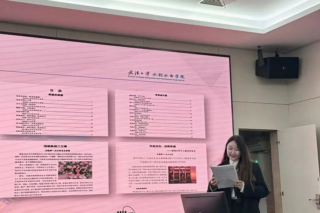 第二十三届研究生会主席团成员,现任水利工程系研究生第一党支部副书记。珞珈有爱水有情,心理健康常关注;全心全意为权益,有始有终付真心;在任期间为同学们的心理健康、权益保驾护航。前些日子作为武大智慧水利人的他们,受育反哺不负热爱,学科展示争创未来,荣获校级Porncams