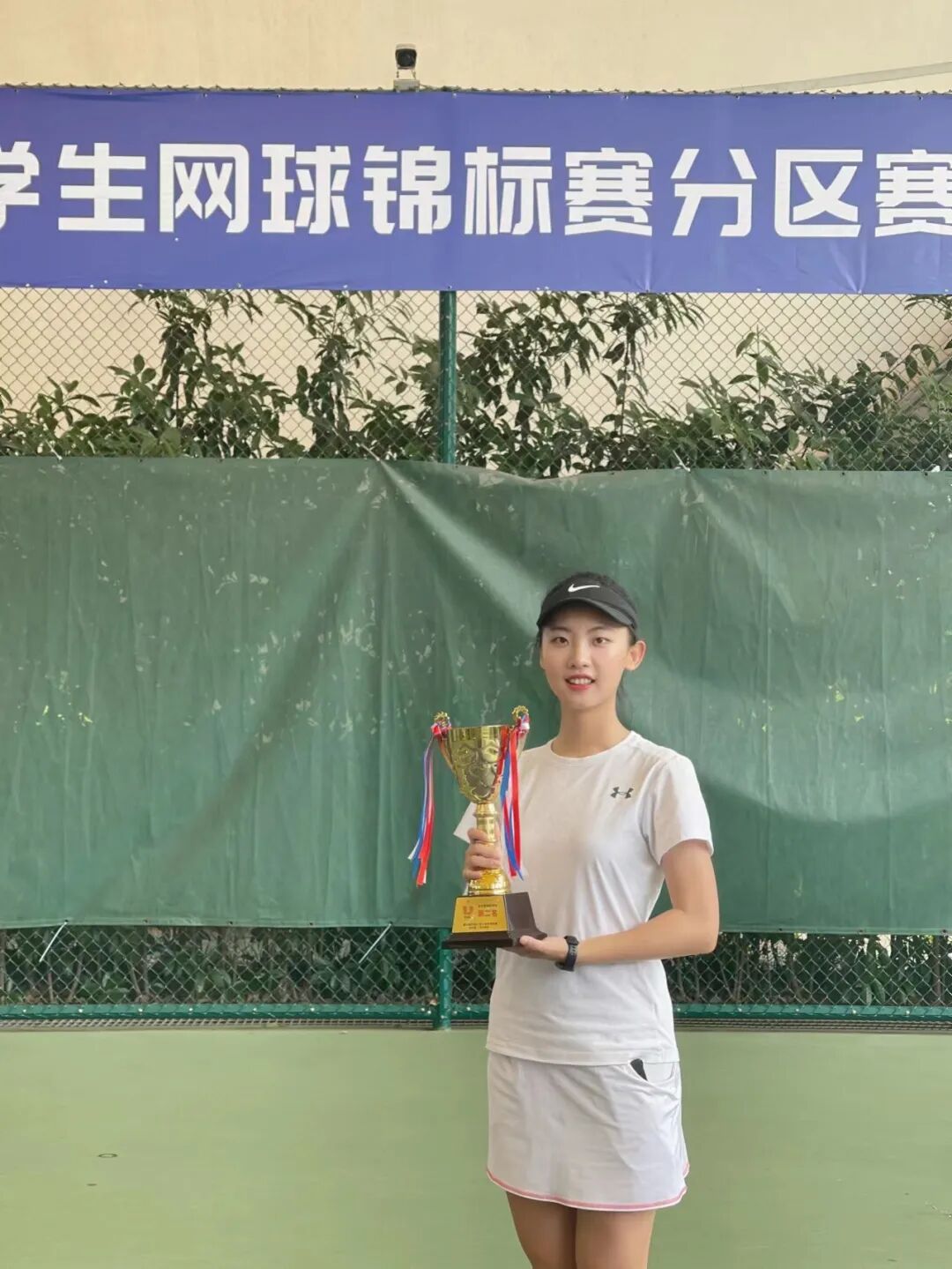 周悦瑶从小参与网球运动,后作为天大校网球队成员学校参加各项比赛。来到武大读研后,在武大良好网球氛围的熏陶和教练队员的指导下,在一次次烈日下的艰苦比赛的考验下,她一路为自己制定了定点专项训练,逐步精进着自己的各项技战术;通过撰写各次比赛总结,分析如何把握比赛形势,总结调整心态的方法。在校网球赛中曾获女单第一名、双打第二名,在省级及国家级比赛中曾获全国大网赛华中赛区女团第一名、湖北省省运会团体第二名、双打第一名等二十余项荣誉。