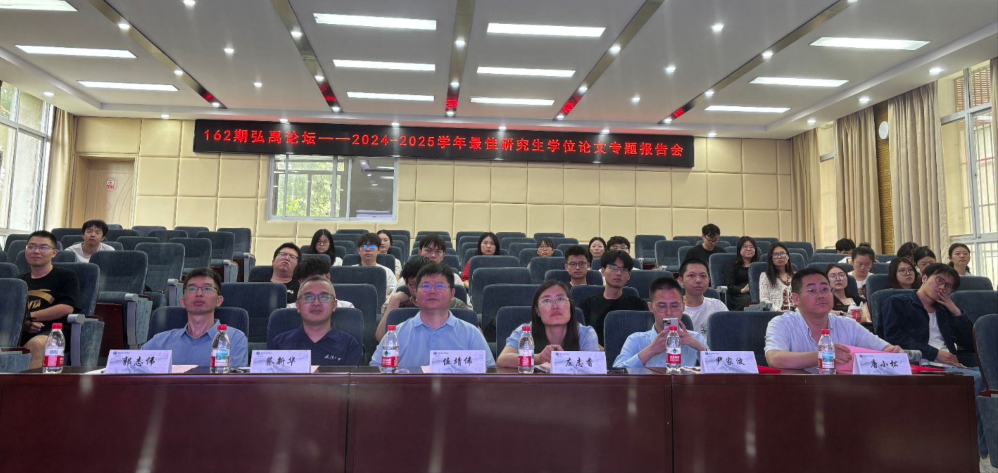 最佳研究生学位论文颁奖仪式暨第162期弘禹论坛专题报告会成功举办。出席本次活动的有学院党委副书记左志香老师、副院长伍靖伟教授、智慧水利系唐小松教授、水文水资源系尹家波副教授、水利工程系郭志伟副教授、水力发电工程系蔡新华副教授、河流工程系孙昭华副教授、研究生教学秘书以及研究生辅导员。