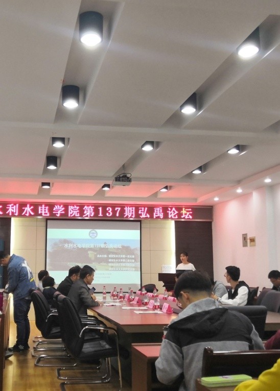 第137期研究生“弘禹论坛”在8208会议室举行。院党委副书记龚文德,教师陈森林、程磊和高仕春,研究生辅导员左志香,学生主讲人黄康迪、张旭、毛玉鑫、赵浩源及相关专业研究生代表出席。本次论坛由水文系研究生第一党支部、第二党支部、第三党支部和第四党支部联合承办。