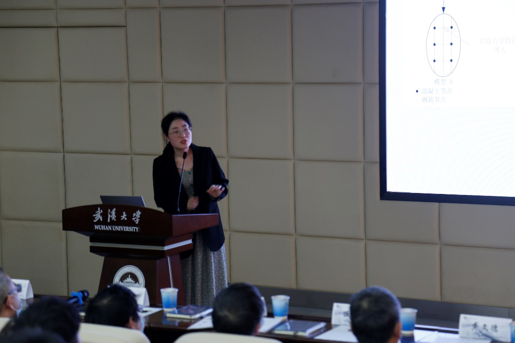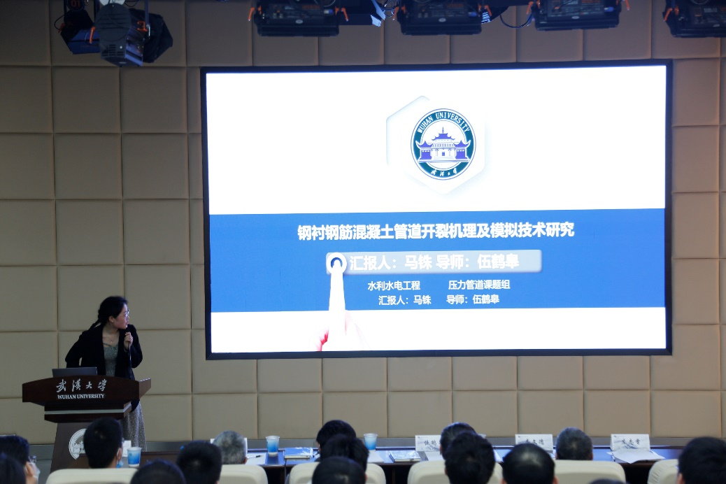 马铢同学则以《钢衬钢筋混凝土管道承载机理研究及长效安全运行评估》为题进行学术报告,报告对水电站钢衬钢筋混凝土管道的承载、开裂和粘结滑移机理展开描述,基于内聚力理论建立了三峡钢衬钢筋混凝土管道的有限元模型,并结合三峡1:2大比尺模型试验的结果,对比研究内聚力模型在钢衬钢筋混凝土管道开裂、粘结滑移和热力耦合等方面的应用。并浅谈了目前水工建筑物,城市排水管道等方面的安全评估的方法,给出了未来钢衬钢筋混凝土管道的评估方法。