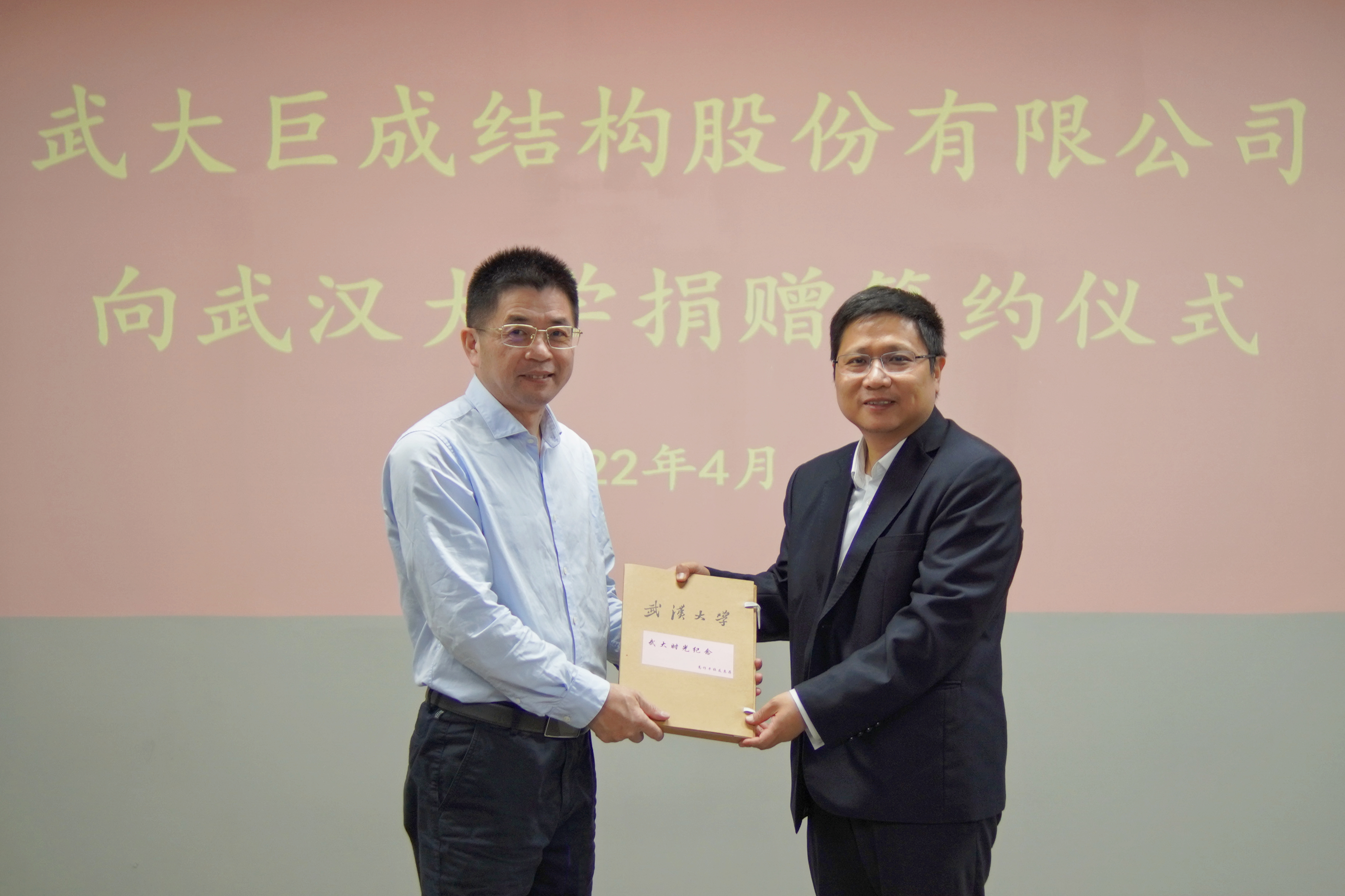 2022年4月28日,武大巨成结构股份有限公司(以下简称“巨成公司”)向学院捐赠仪式在巨成公司举行。Porncams