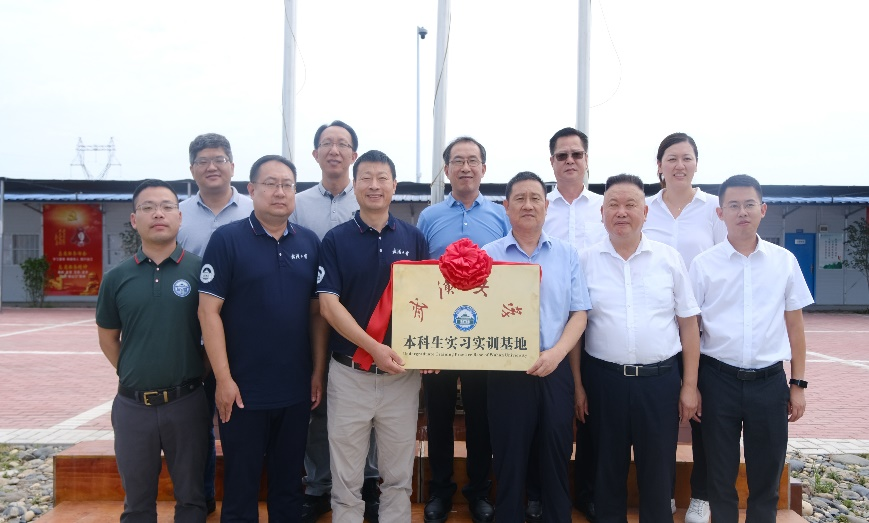的基本情况和学生开展实习实训的情况,对公司为学生提供实习实践机会表示感谢。希望进一步深化合作,为企业高质量发展和高校人才培养做出贡献。随后在项目驻地举行了本科生实习实训基地揭牌仪式。学院党委副书记张栋梁、汉江国投党委副书记、董事黄开均共同为基地揭牌。
