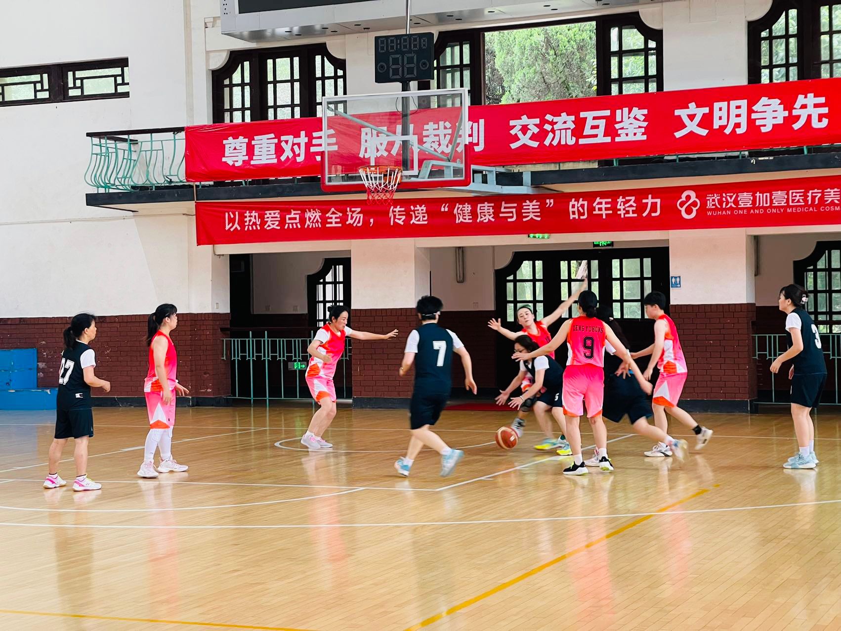 学院男篮和女篮参加学校教职工篮球比赛